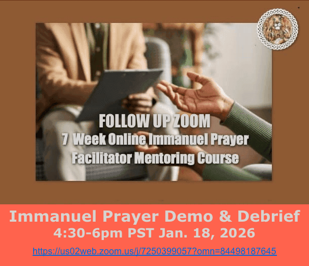 We’ve had several requests to provide an opportunity to deepen our understanding and confidence as IP facilitators, so we’d like to invite you to join us on Sunday January 18 at 4:0pm PT for a 90 minute Immanuel prayer demo and debrief session. The purpose of this time will be to continue refreshing and enhancing your skills as a facilitator. And even if you’re not currently facilitating, we hope you will join us just to deepen your experience of Immanuel lifestyle, secure attachment to Jesus and personal transformation.
